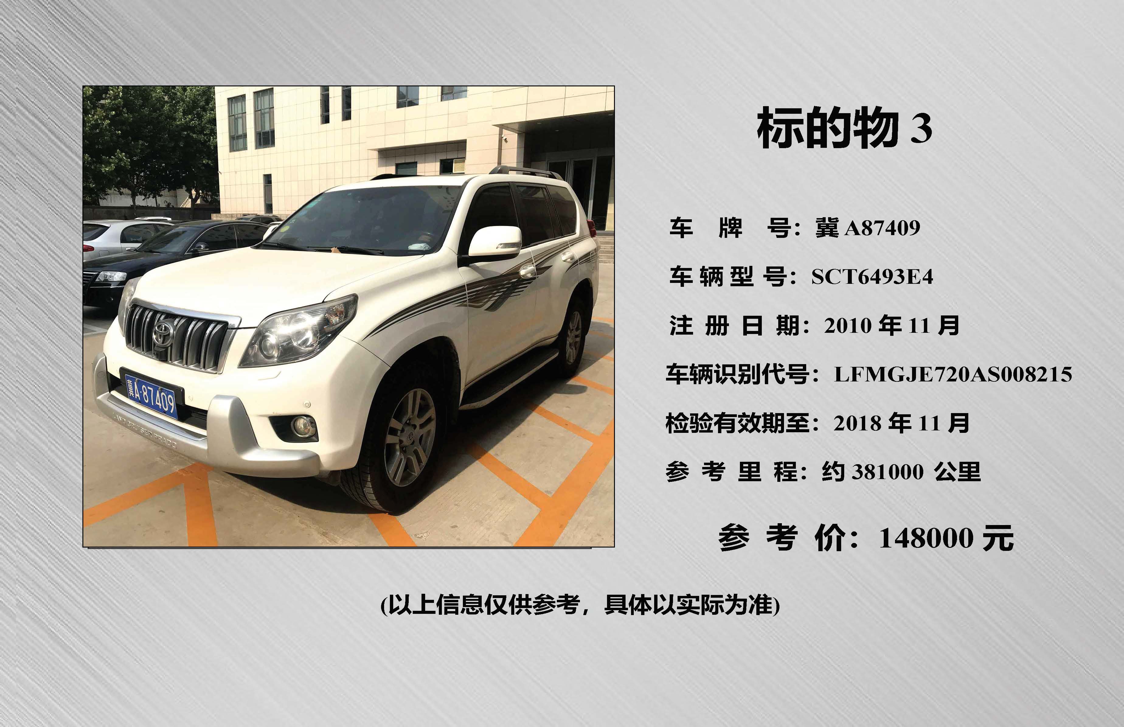 - 拍賣公告受委托,我公司定于2018年06月28日09:30在中拍平臺(https://paimai.caa123.org.cn/)公開拍賣機動車3輛(含:大眾、柯斯達、豐田牌汽車)(不接受現(xiàn)場競拍)。2018年06月26日至27日在標的物所在地預展。有意競買者請攜有效證件及競買保證金到我公司辦…
