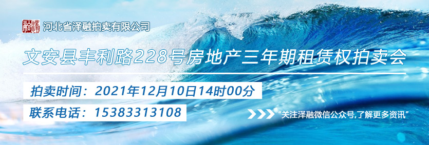 - [拍賣公告]文安縣豐利路228號(hào)房地產(chǎn)三年期租賃權(quán)拍賣公告20211210