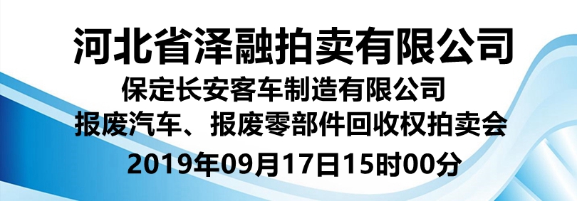 - [拍賣公告]保定長安客車制造有限公司報(bào)廢汽車、零部件回收權(quán)拍賣公告20190917