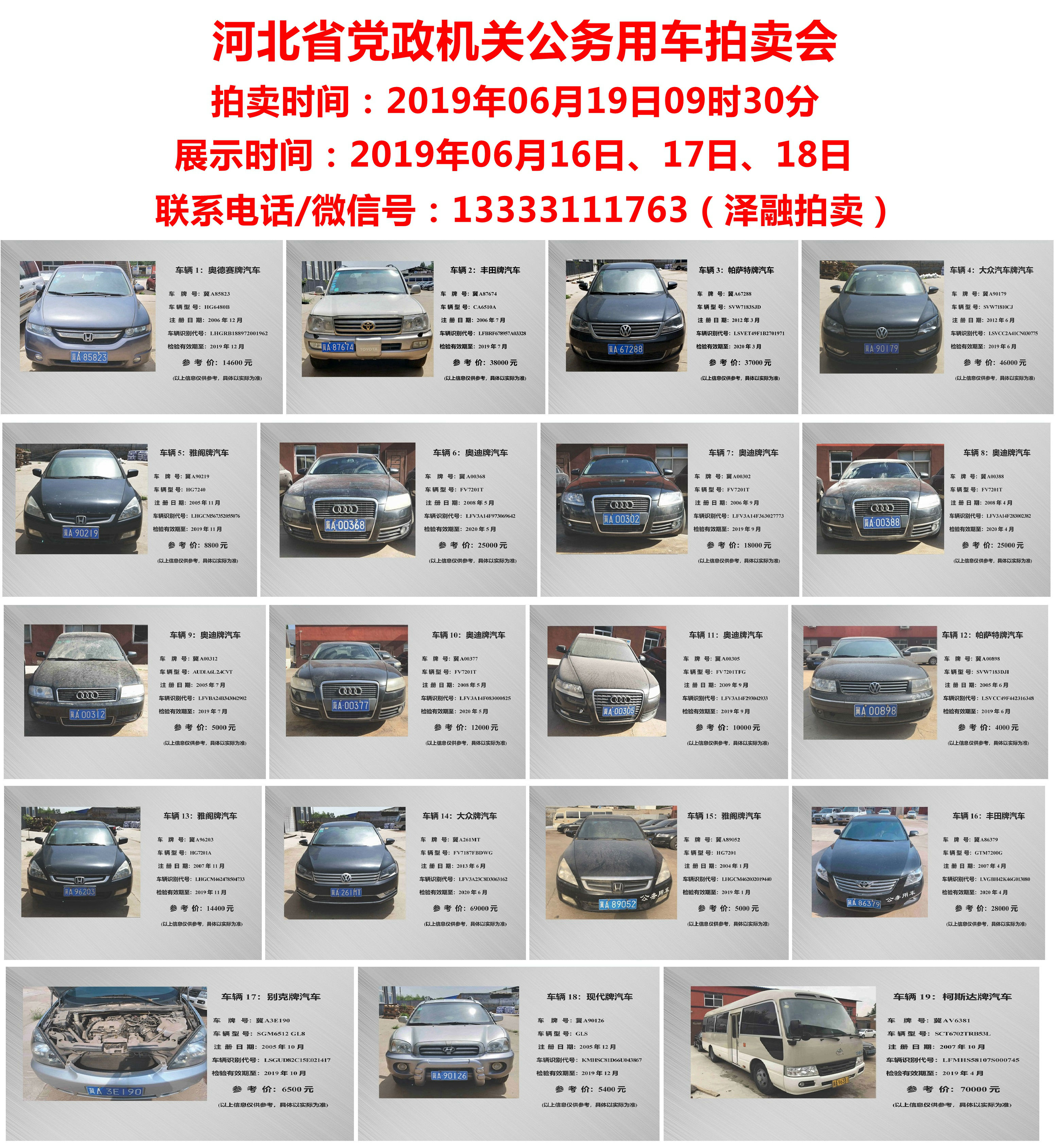 [拍賣公告]河北省黨政機(jī)關(guān)公務(wù)用車一批拍賣公告20190619